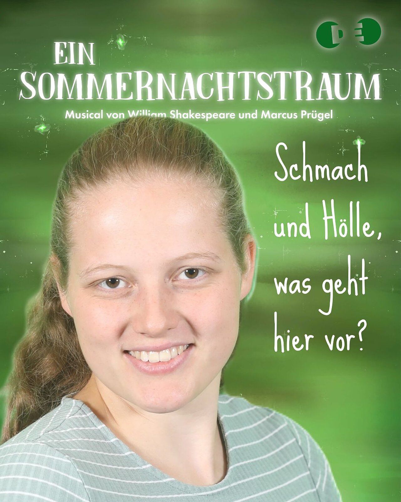 Bereits als Kind hat die inzwischen Sechzehnjährige ihre Liebe zum Theater entdeckt, als sie 2016 während dem Stadtmauerfest beim Kinderstück „Die Stadt, der Graf und die Sau“ mitwirkte. Seither hat sie bei unterschiedlichen Produktionen mitgemacht; 2019 war sie die Isa im Musical „SoXellSo“, im „Ding der Nibelungen“ 2022 spielte sie die junge Version der Brunhild, und auch vor zwei Jahren war sie in „Der kleine Horrorladen“ als Straßengöre Ronette dabei. Daneben war sie beim Verein Alt Nördlingen (VAN) in verschiedenen Kinderstücken zu sehen. Dass Sarah eine solche Begeisterung für die Schauspielerei hegt, ist nicht verwunderlich. Ihr Vater Marcus Prügel ist ein echtes DE-Urgestein und jedes Jahr in irgendeiner Form – sei es als Schauspieler oder als musikalischer Leiter – an den Inszenierungen beteiligt. „Ich bin eigentlich mit dem DE aufgewachsen. Von klein auf war ich immer dabei, habe bei den Proben zugeschaut. Irgendwann wollte ich dann auch selbst mitmachen“, erzählt die Schülerin. Den Puck empfindet sie als spannende Rolle: „Irgendwie ist er ja für den ganzen Wirbel in der Komödie verantwortlich und mischt mit seiner schelmischen Art ständig alles und alle auf.“